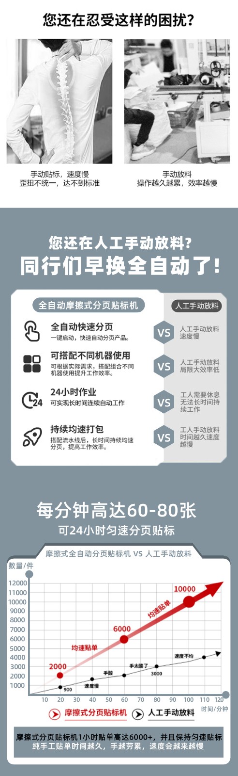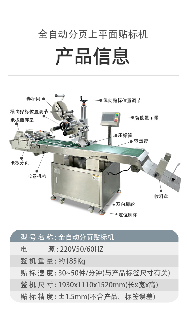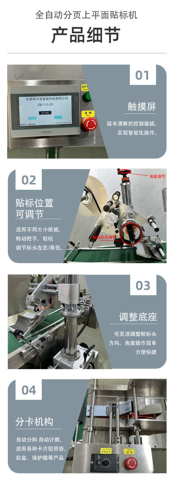 東莞市中堡智能科技實業(yè)有限公司的全自動分頁貼標機:可應(yīng)用于紙片、名片、標簽、各種材質(zhì)的卡片、電話卡、IC 卡、IP 卡、游戲沖值卡、塑料復(fù)合包裝袋、紙盒片、紙袋等各種厚度各種材質(zhì)的片狀物品的自動分頁,并進行貼標。以 ±1mm 超高精度和 0-100 個 / 分鐘的極速性能,支持多種標簽類型,廣泛應(yīng)用于電子、五金、塑膠、化工等行業(yè)。