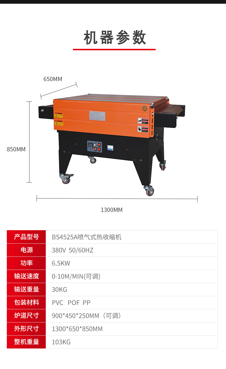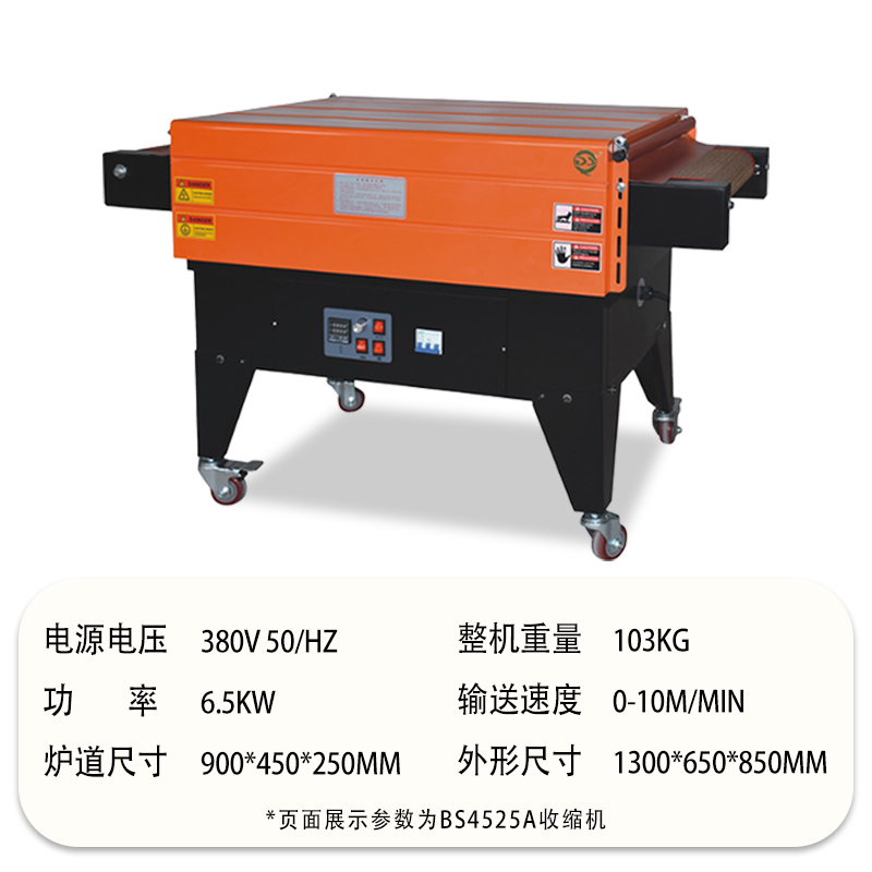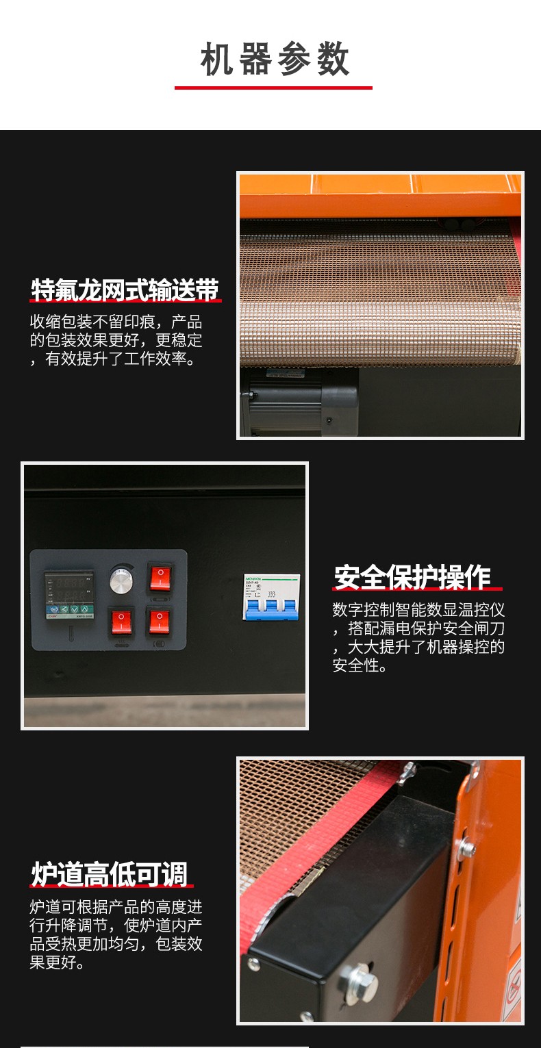 - 收縮溫度范圍:一般為 120 - 200℃。不同的熱收縮薄膜有不同的最佳收縮溫度,在選型時(shí)要考慮機(jī)器的溫度范圍是否能夠滿足所使用薄膜的要求。例如,PVC 薄膜的收縮溫度一般在 140 - 160℃,POF 薄膜的收縮溫度約為 160 - 180℃。
