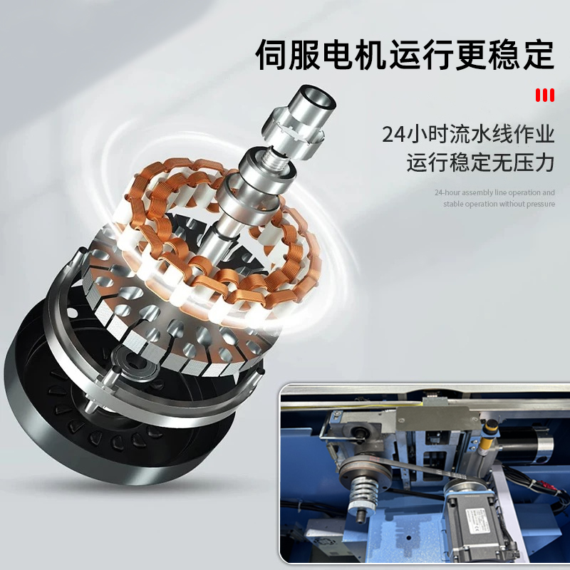 - 捆扎打包:根據(jù)預(yù)設(shè)的參數(shù),伺服電機(jī)驅(qū)動(dòng)打包帶圍繞物品進(jìn)行捆扎。在捆扎過(guò)程中,伺服電機(jī)精確控制打包帶的張力,確保打包帶能夠緊密地貼合在物品表面,同時(shí)又不會(huì)對(duì)物品造成損壞。完成捆扎后,切斷機(jī)構(gòu)會(huì)自動(dòng)將打包帶切斷,并對(duì)末端進(jìn)行熱封或其他方式的處理,防止打包帶松開(kāi)。