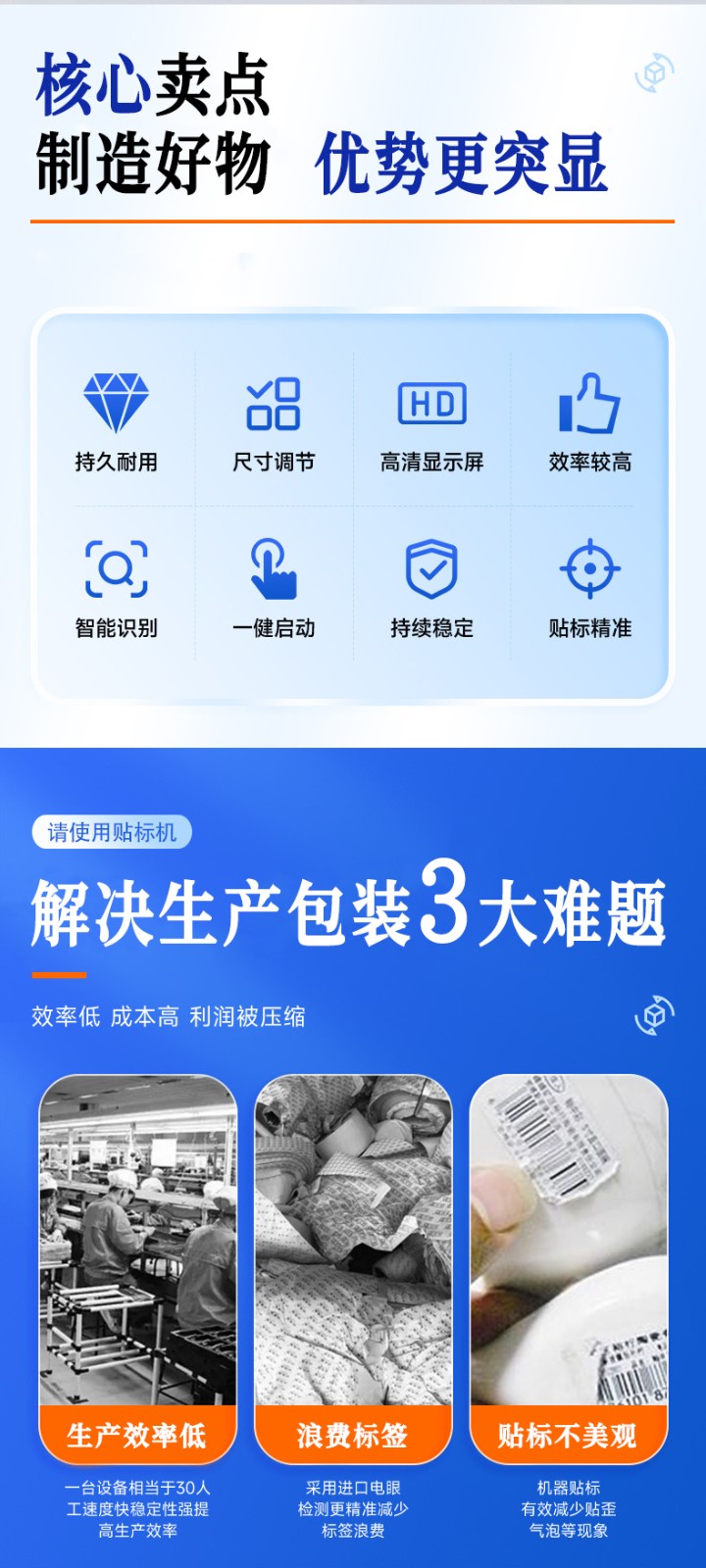 - 推送機(jī)構(gòu)根據(jù)容器移動(dòng)速度同步向下推送標(biāo)簽,確保標(biāo)簽在容器移動(dòng)過程中 “無卡頓、無偏移” 地套合,套標(biāo)位置誤差≤±0.5mm。