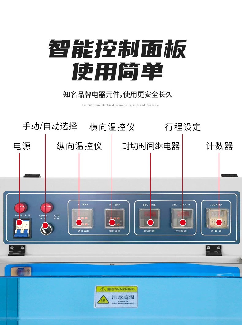 - 核心部件(如封切刀、輸送帶)均為模塊化設(shè)計,拆卸更換方便,日常維護僅需清理廢膜、檢查加熱管即可。